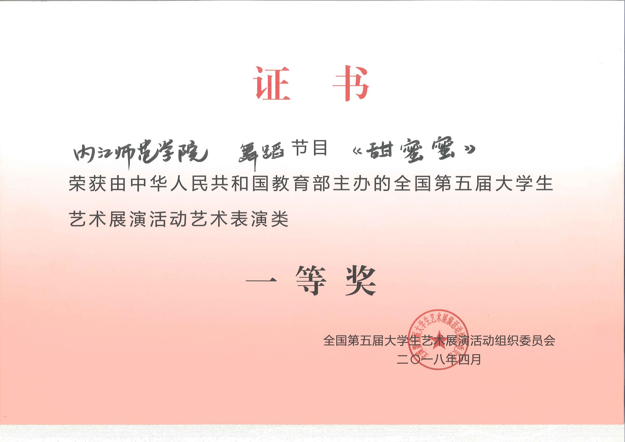 全国第五届大学生艺术展演活动艺术表演类一等奖