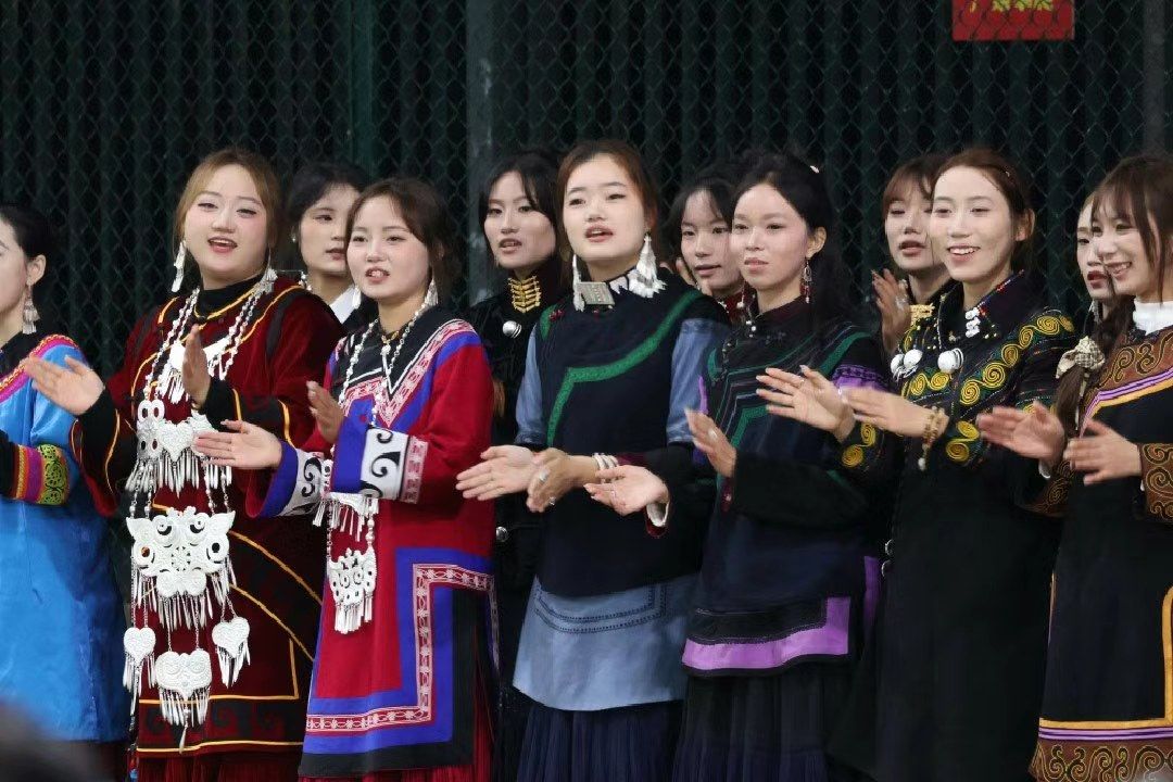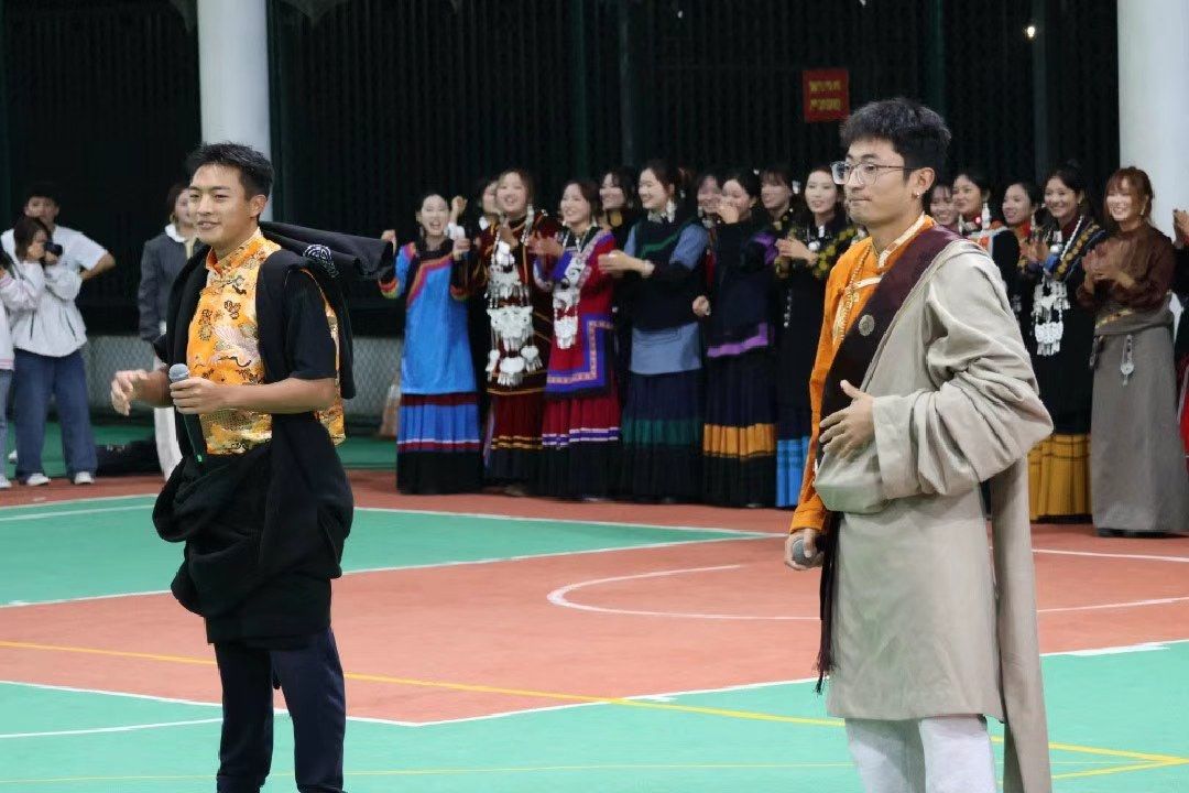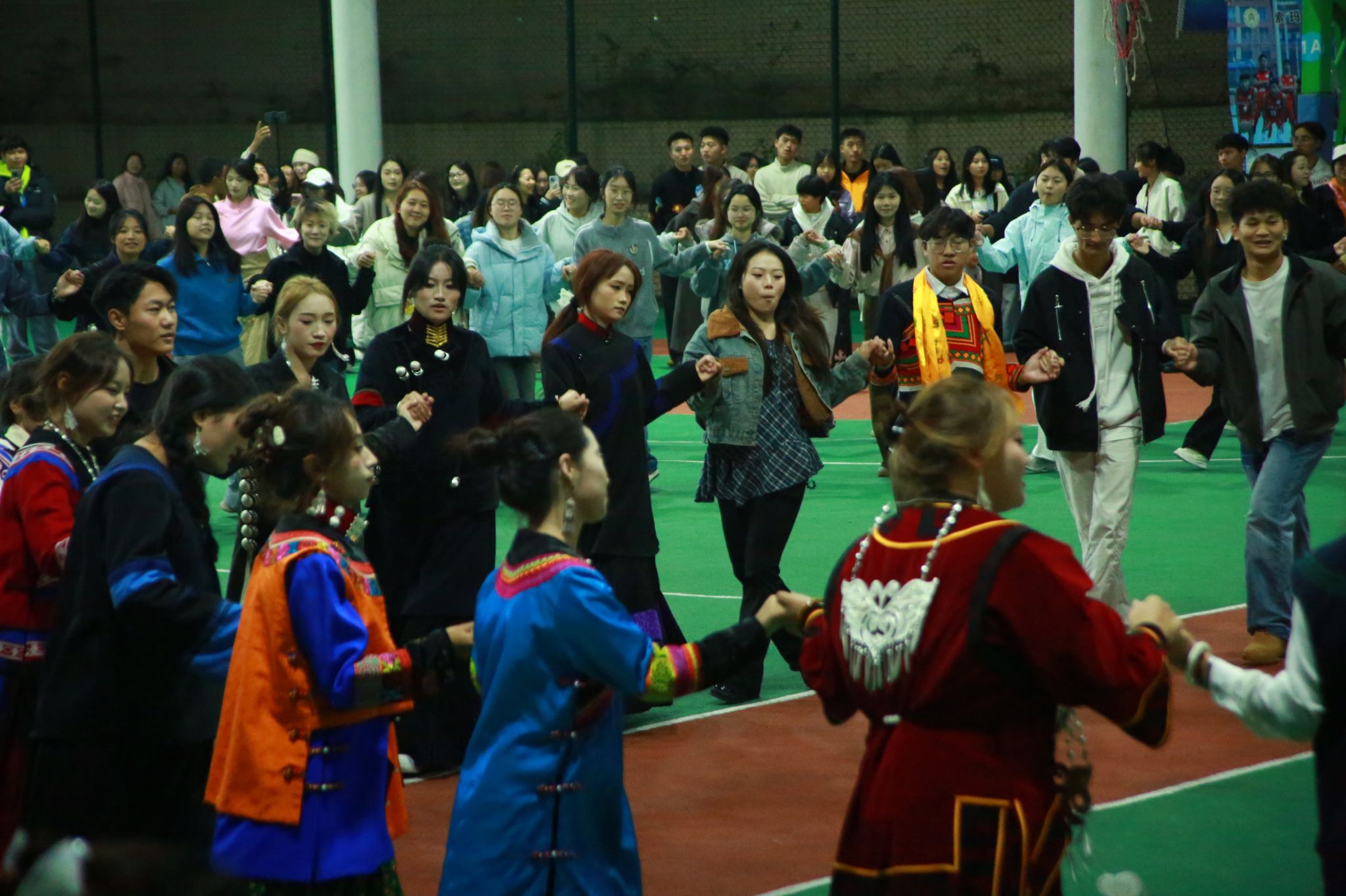 开幕式上,由汉族、彝族、藏族、维吾尔族等多民族学生组成的18支参赛队伍集体亮相,生动呈现了中华民族多元一体的文化魅力。在庄严的国歌声奏响后,裁判员代表与运动员代表郑重宣誓。文艺表演环节精彩纷呈:《阿苏拉则》旋律悠扬,带领观众领略彝族文化的深厚底蕴;《团结之声》鼓点激昂,诠释了“五十六个民族是一家”的强烈认同;《雪域踏舞·舞韵荟萃》舞姿奔放,哈达飘扬,展现藏族同胞热情团结的精神风貌;《月琴舞》琴舞相融,意境优美;《百人达体舞》将现场气氛推向高潮,各族学子手挽手、心连心,用跃动的身影勾勒出中华民族大团结的动人画卷。