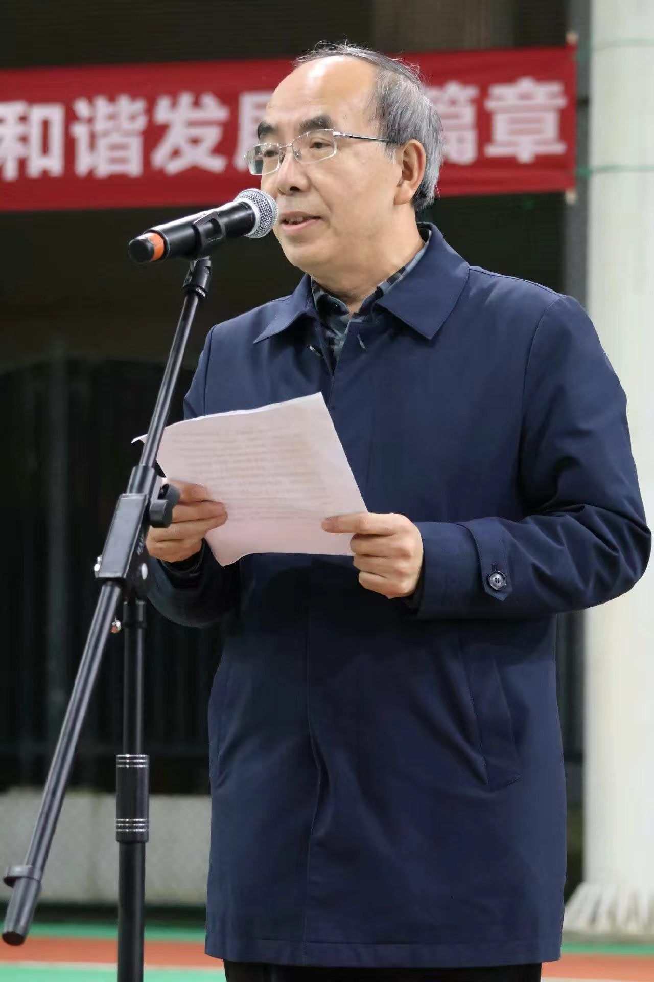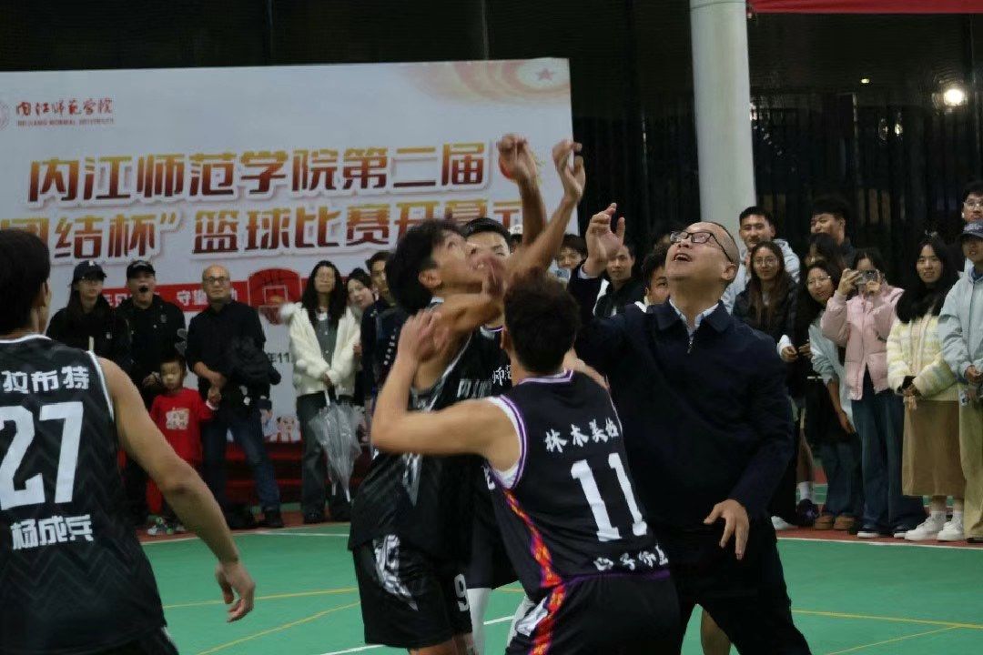 黄辉在致辞中表示,“团结杯”篮球赛是我校民族团结进步宣传月的重点活动,是增进思想共识、深化民族情谊的重要平台。他指出,篮球运动传递的是团结协作的力量,赛场风采展现的是昂扬向上的精神,每一次攻防互动都凝聚着“中华民族一家亲”的深厚情谊。他希望全体运动员弘扬“友谊第一、比赛第二”的体育精神,尊重对手、遵守规则,赛出风格、赛出水平、赛出友谊,展现内师学子团结拼搏的青春风貌;同时要求裁判员和工作人员认真履职、公正执裁、热情服务,确保赛事有序进行。