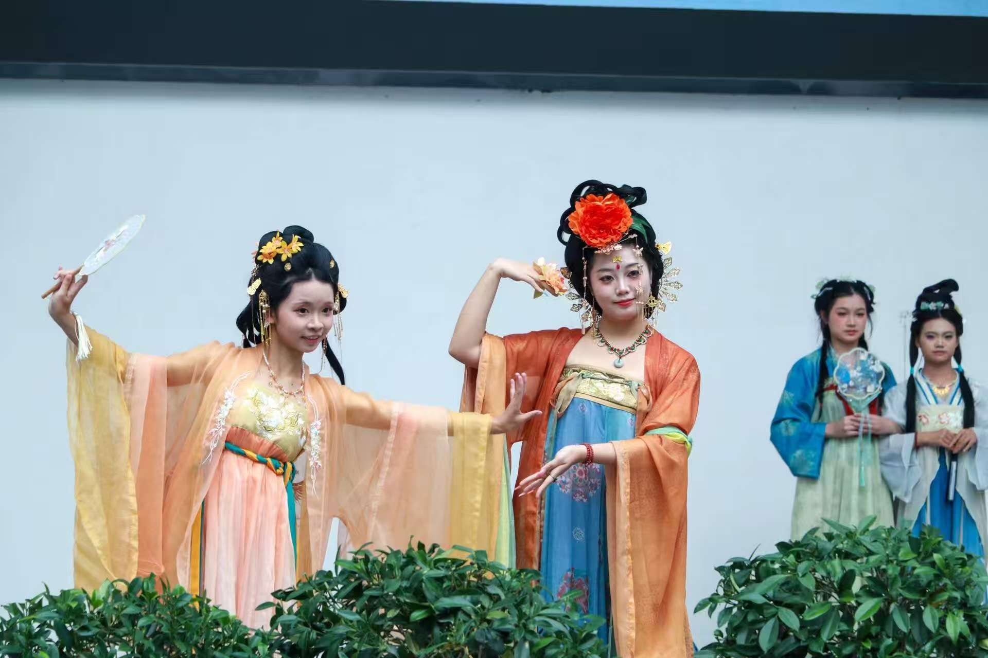 整场演出精彩纷呈,实现多元艺术形式融合。情景朗诵《那一年,中国青年正十八》带领观众感悟中国精神;流行舞《三彩》将力与美完美结合;脱口秀话剧《世说川语》展现幽默四川方言特色;汉服走秀《华裳》展示华夏衣冠的博雅风采;萨克斯重奏《青春跃马·礼赞祖国》表达对祖国真挚热忱的爱;古典舞串烧《敦煌绮梦·四季赋》描绘灵动敦煌画卷;歌曲《大山》唱出华夏多民族交融盛况;走秀《墨染旗袍·声伴芳华》体现民国时期女性荣光。