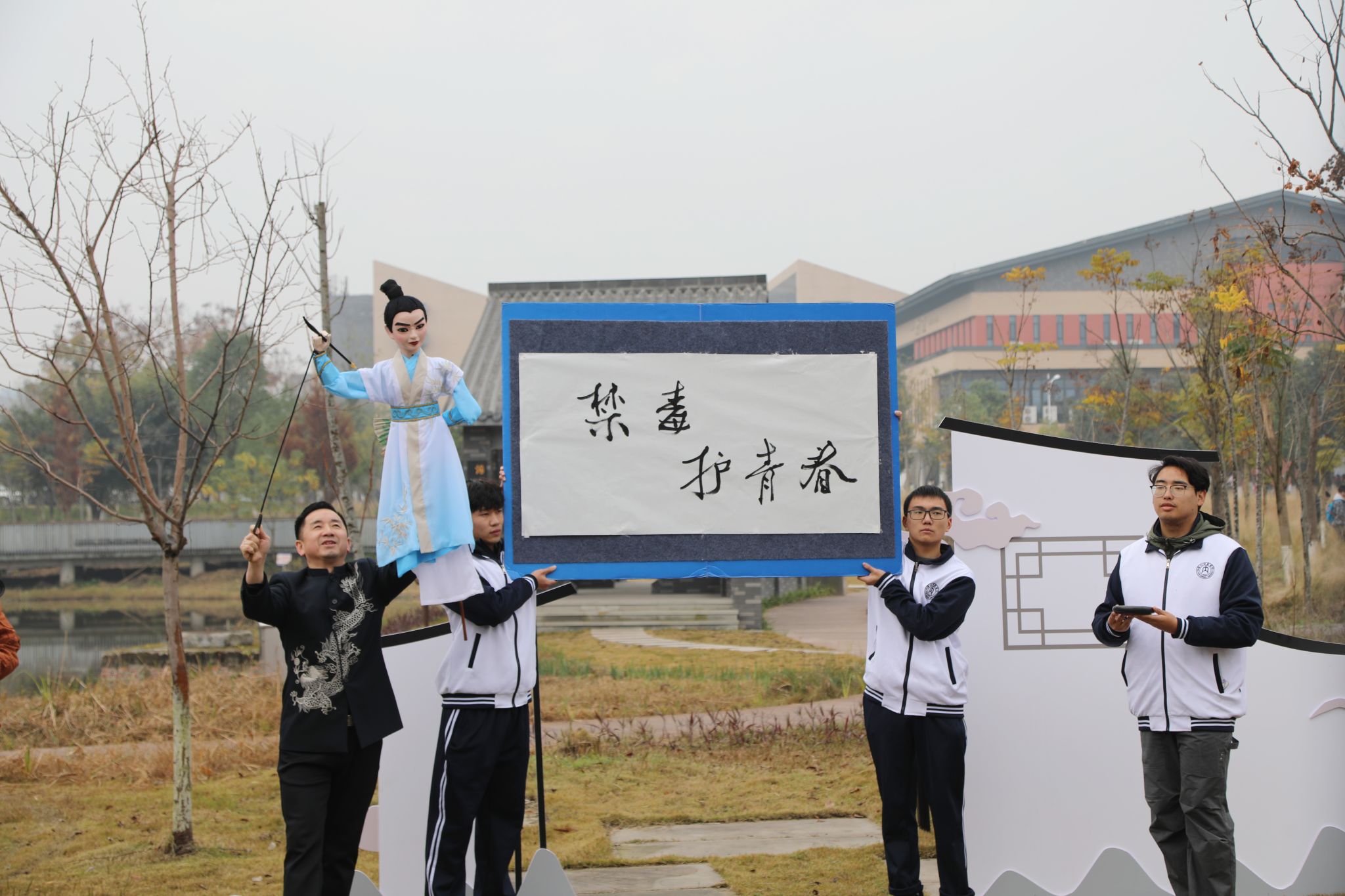 “非遗+禁毒”成为本届活动最大亮点。书法创作、手工制笔、黄氏吹糖人、汉安夏布绣等非遗体验活动巧妙融入禁毒主题,木偶戏、盘破门武术等表演以艺术形式传递拒毒理念,将文化传承与禁毒教育的深度融合。