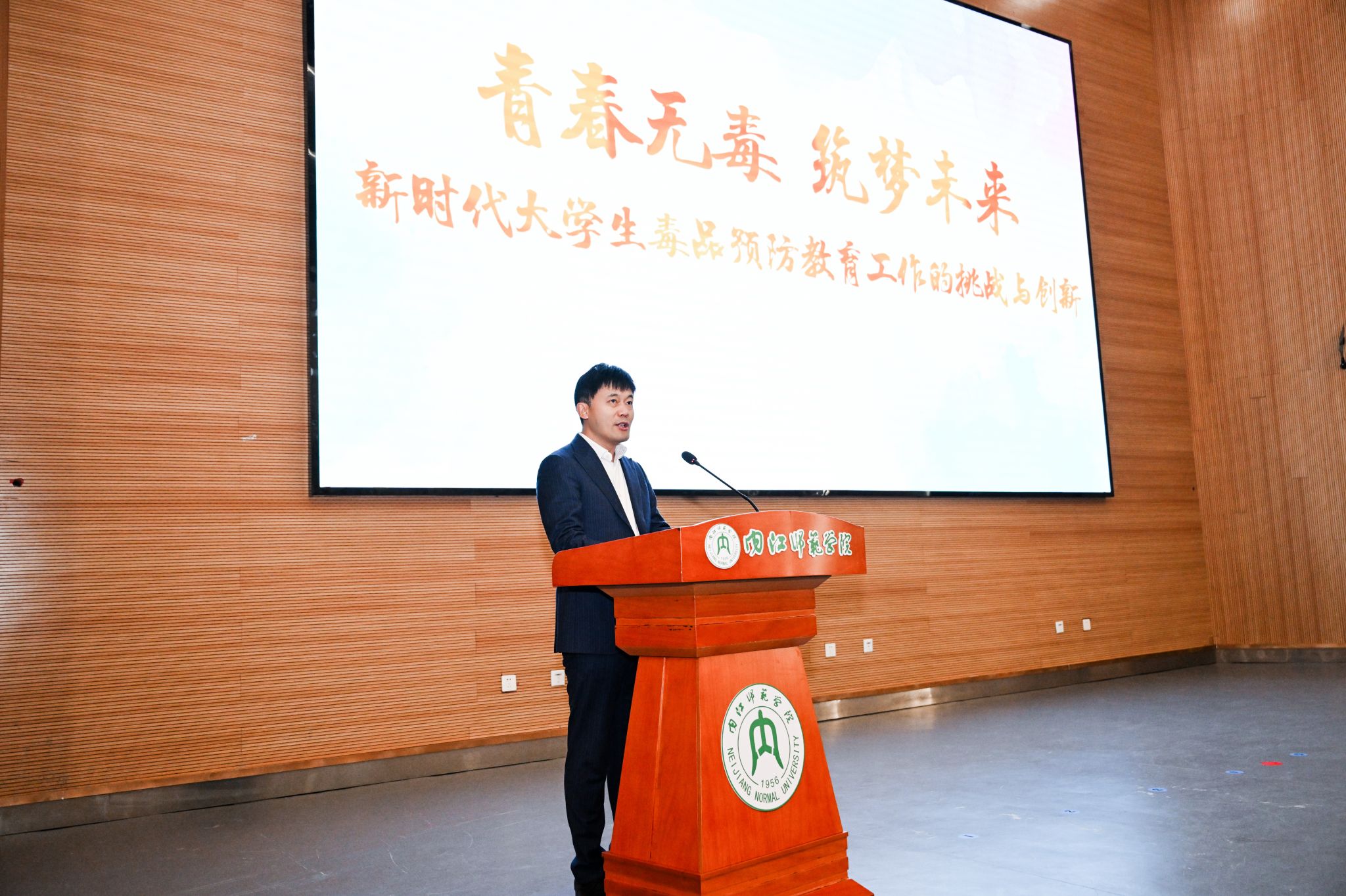 郭云东在致辞中指出,学校始终将禁毒教育融入“三全育人”体系,通过专题讲座、作品创作、志愿服务等形式推动禁毒教育从校园延伸到社会,形成了“教育一个学生,影响一个家庭,带动一个社区”的良好效应。他呼吁广大青年学子要主动学习禁毒知识,积极投身宣传实践,争做“识毒、防毒、禁毒”的践行者与传播者,为筑牢无毒防线贡献青春力量。