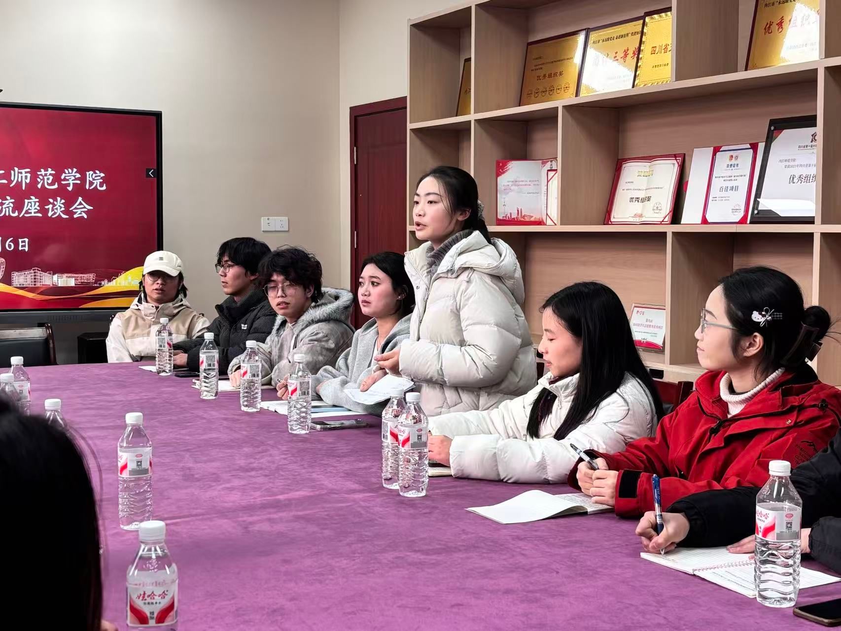 内江师范学院在校团学骨干代表、社会实践代表、考研学生代表及学科竞赛学生代表参加座谈。