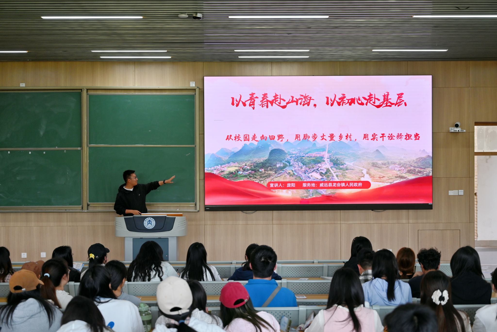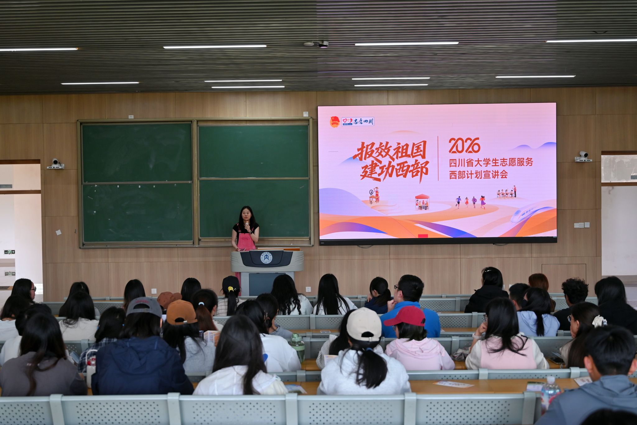 为深入贯彻落实国家引导高校毕业生到基层建功立业的决策部署,引导广大青年学子树立基层就业、服务国家的理想信念,助力青年将青春抱负融入西部建设与基层发展,4月24日上午,我校于明德楼B区110教室举办2026年“青春就业大讲堂”暨四川省大学生志愿服务西部计划宣讲活动。