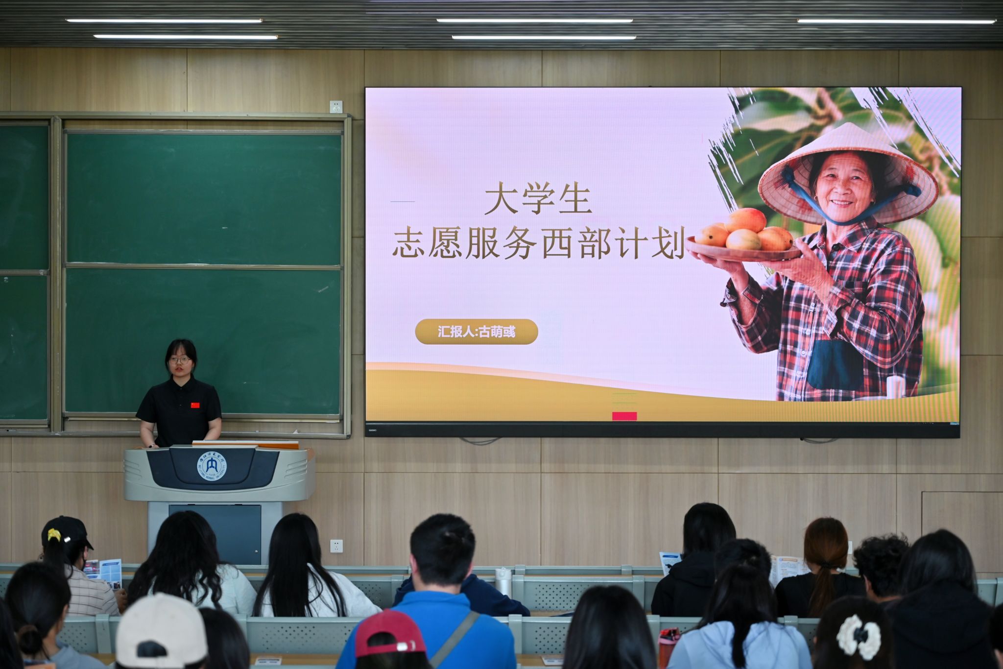 本次宣讲活动不仅深化了青年学子对西部计划“扎根基层、服务人民”育人理念的理解,更点燃了大家投身基层、奉献西部的热情与信心,坚定了同学们立足基层实干、在攻坚克难中成就自我的信念。未来,我校将持续做好基层服务专项活动的宣传动员工作,引导更多青年学子在基层实践中锻炼本领、砥砺品格,用实际行动践行“请党放心,强国有我”的青春誓言。