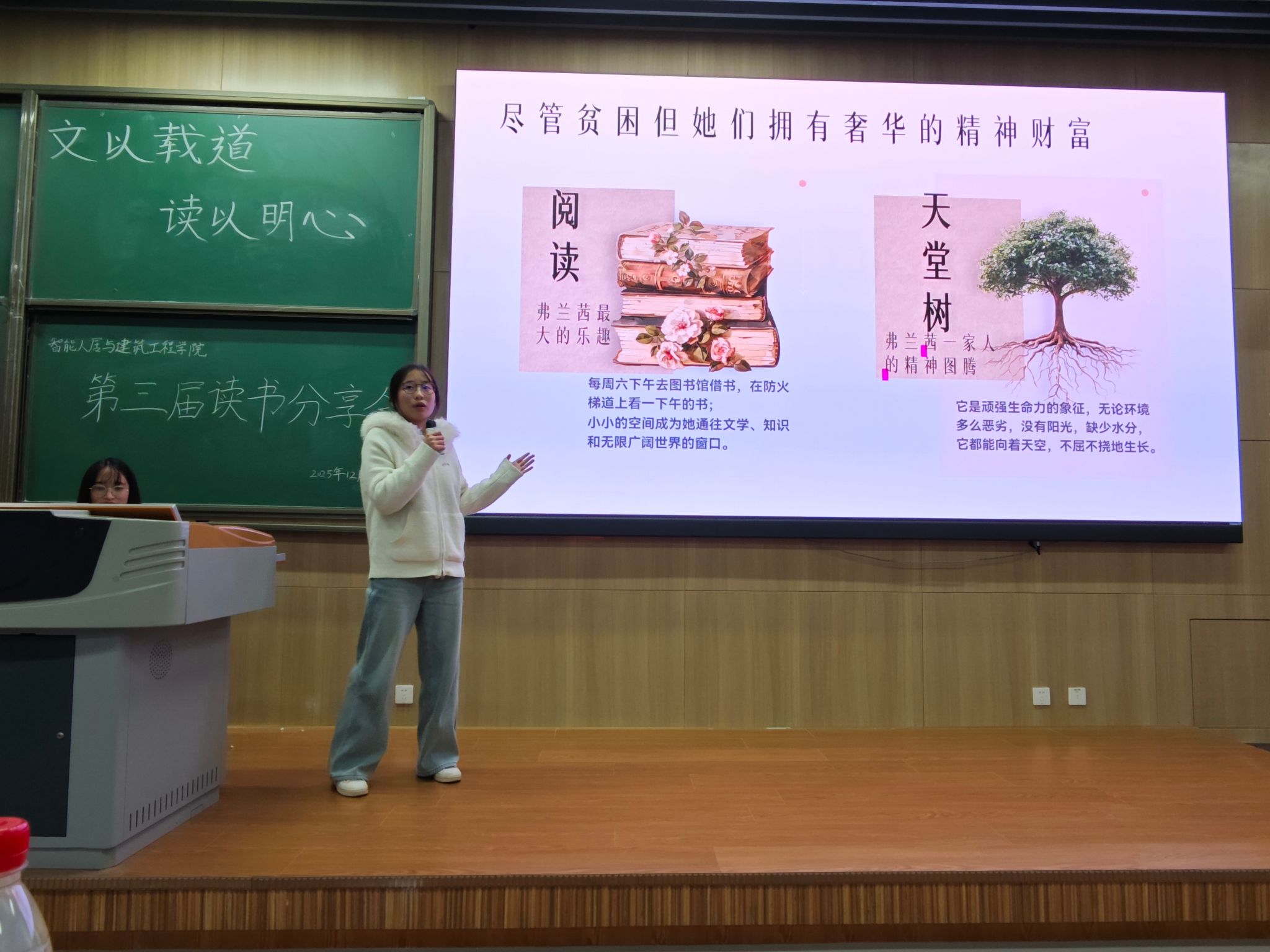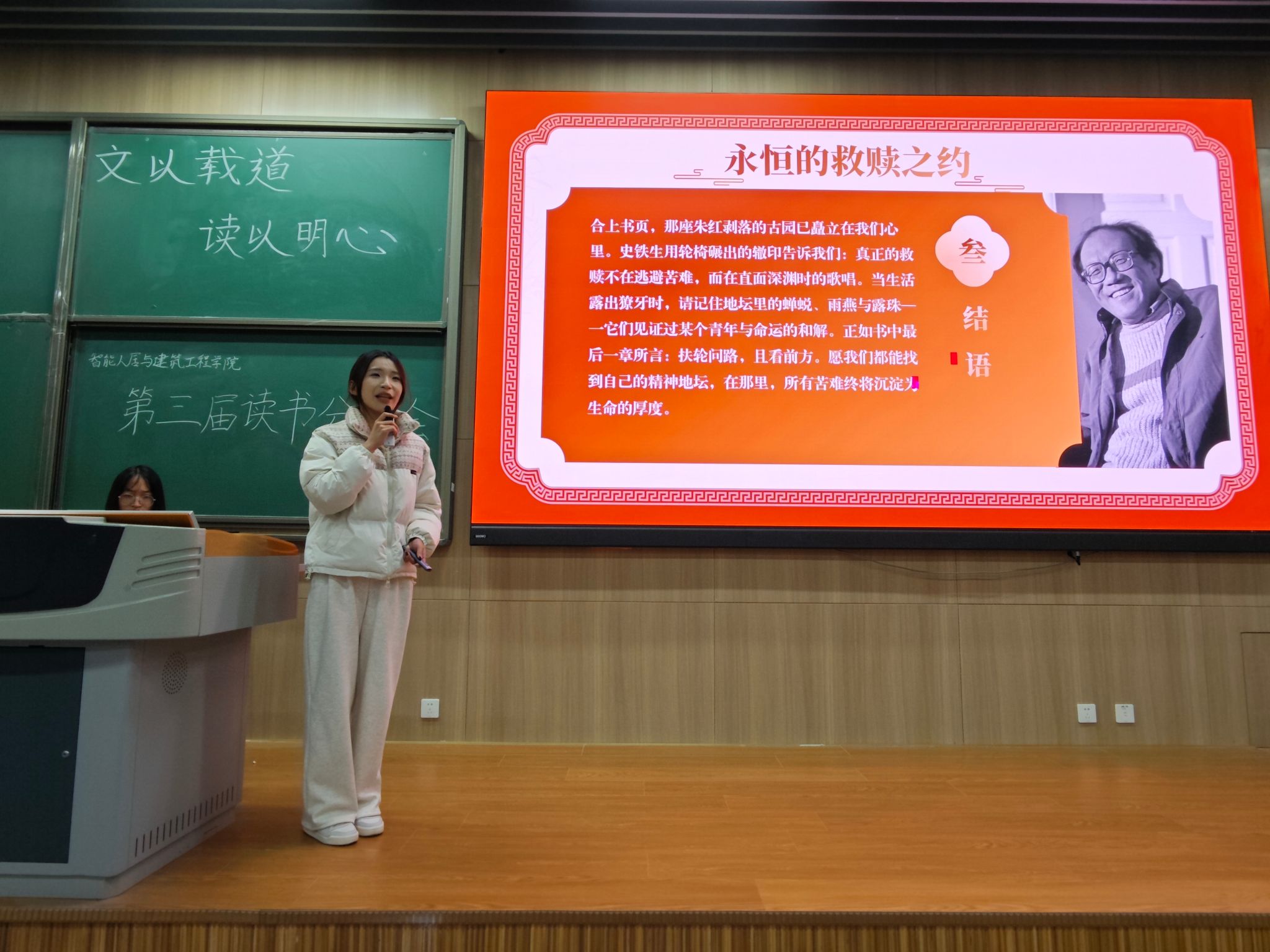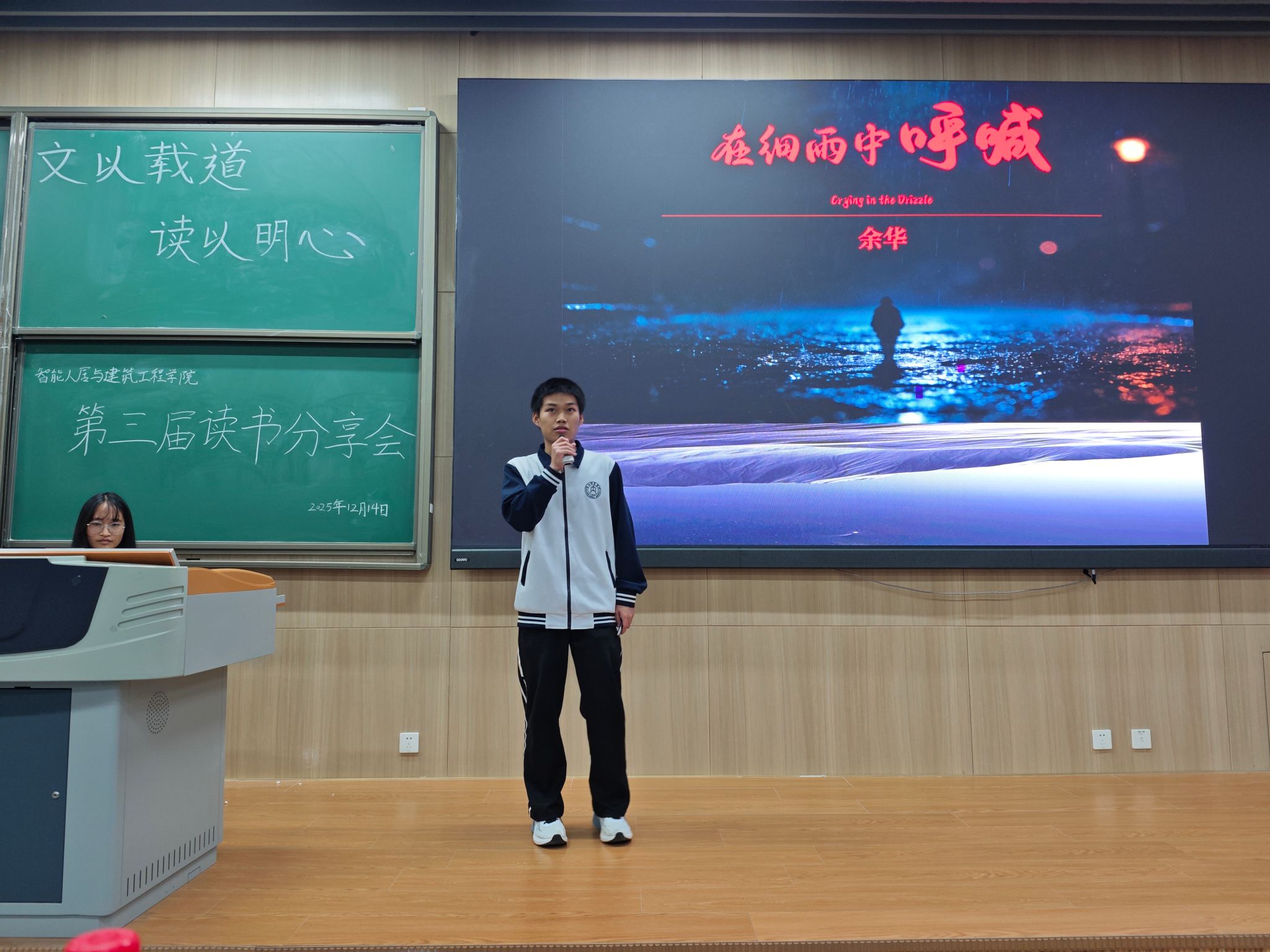此次读书分享会,不仅为同学们搭建了展示阅读成果、交流心得体会的优质平台,更有效激发了全院师生的阅读热情。未来,智建学子将把阅读内化为生活习惯,在墨香氤氲中汲取成长力量,让书香气息浸润校园的每一个角落。