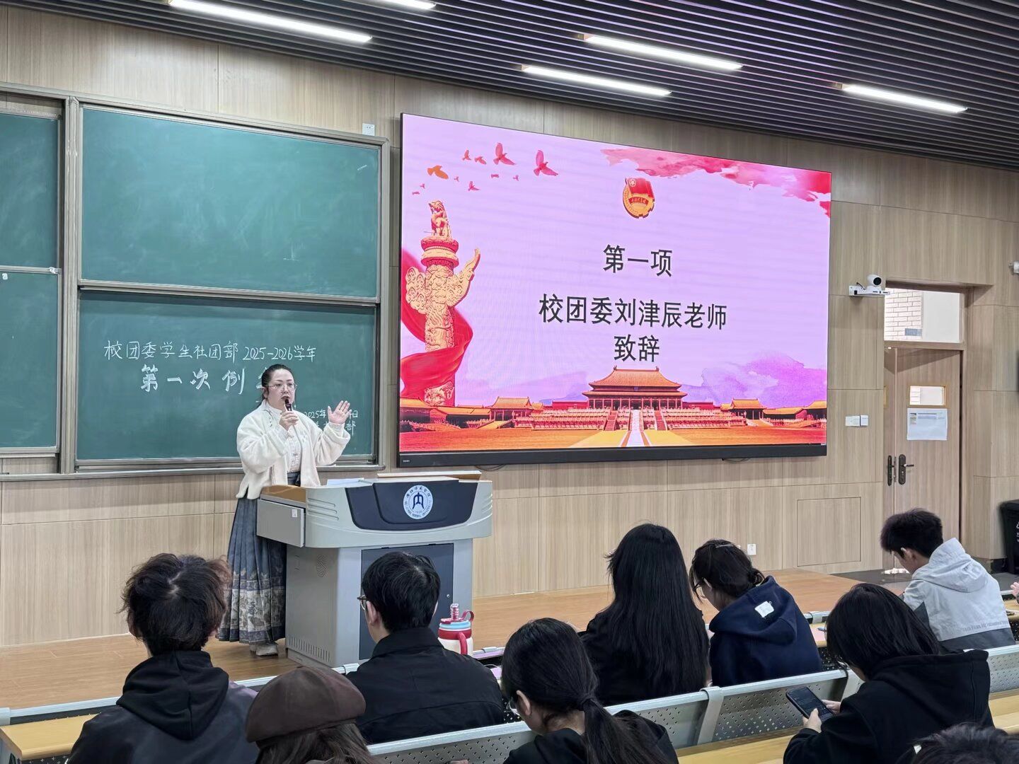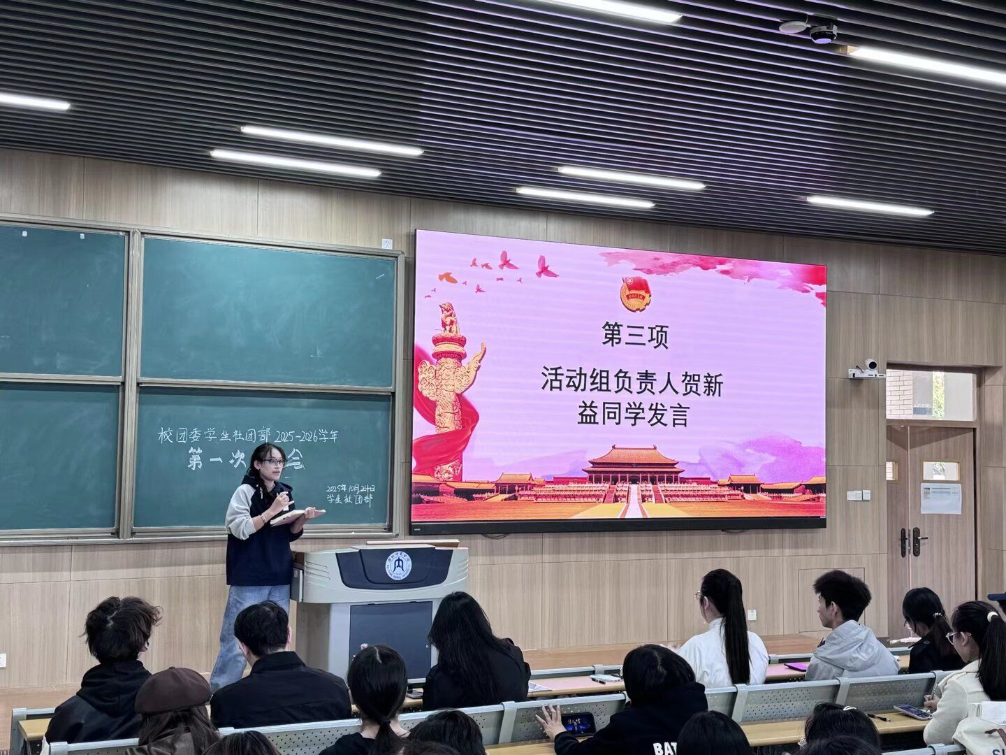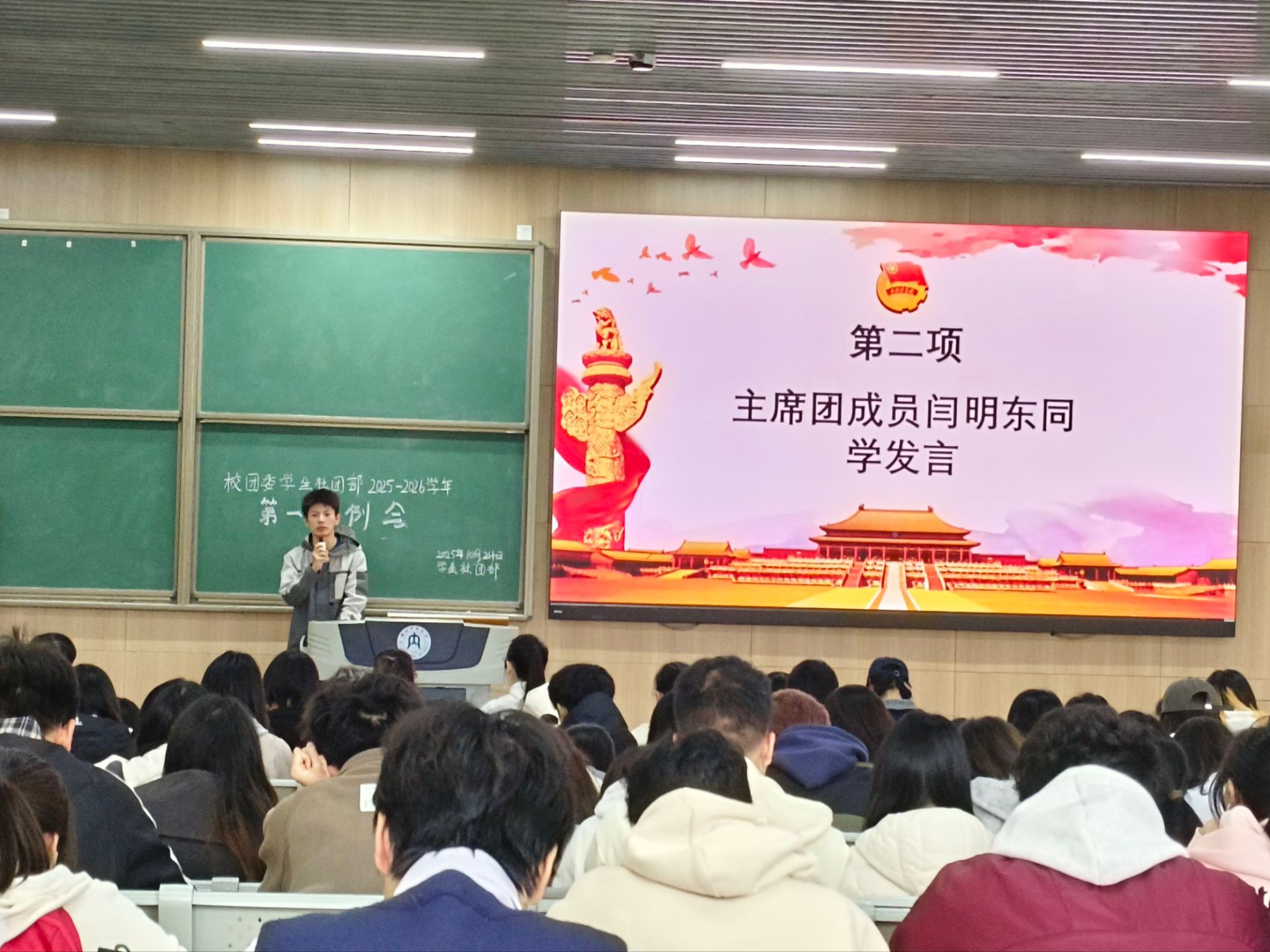 为明确学生社团工作方向,加强社团规范化管理,推动校园社团文化健康发展,10月24日中午,我校团委社团部在明德楼B区111教室召开2025-2026学年第一次例会。校团委专职团干部刘津辰出席会议。