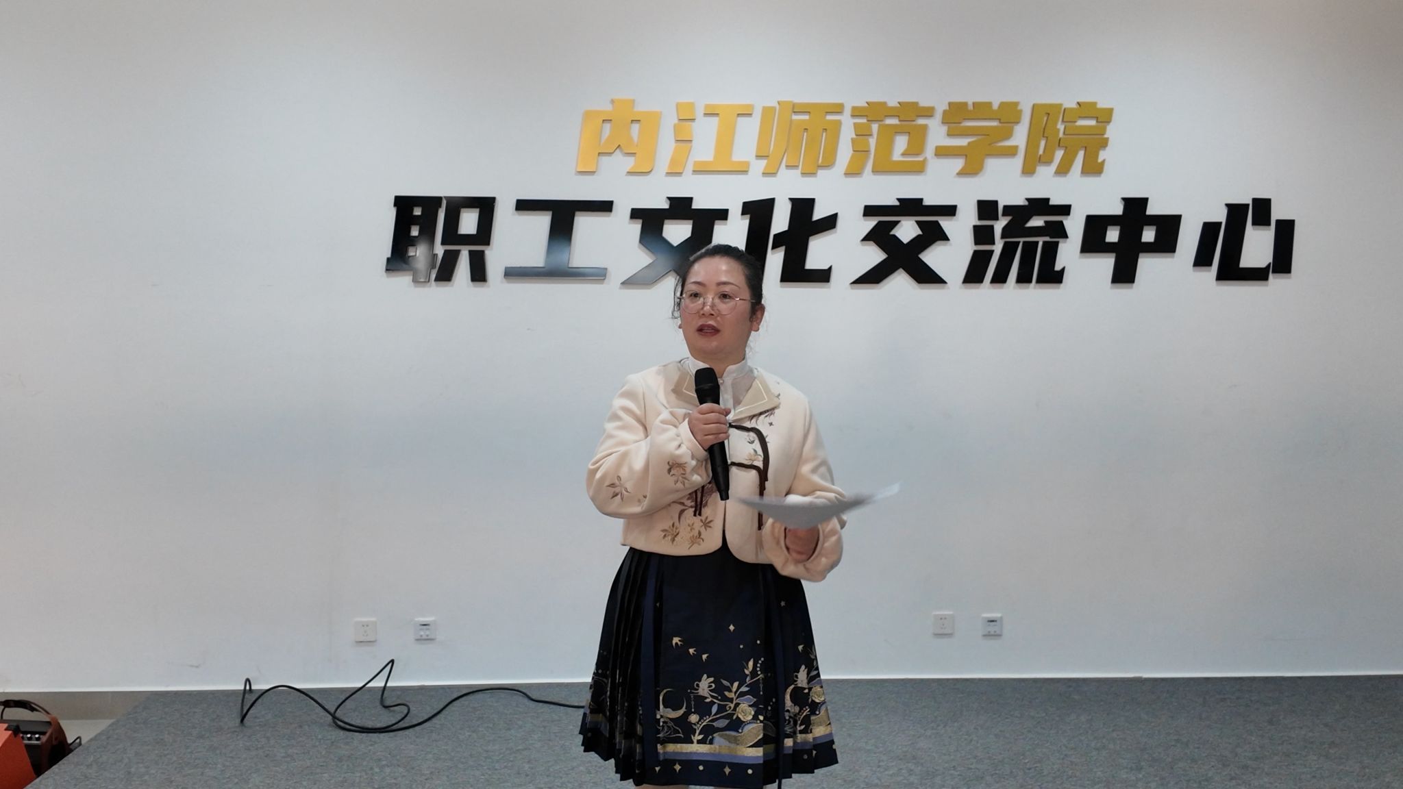 书法协会指导老师宋学勤从文化育人角度,提出加强跨社团联动、推动传统文化创新发展的具体建议。人工智能学院俞守绪老师系统介绍学院在社团孵化、资源对接、过程管理等方面的支持体系。校团委社团部指导老师刘津辰着重强调社团工作的育人功能,呼吁构建“社团-学院-学校”三级联动、协同共育的工作格局。讨论环节,锦衾汉服社、火塘文化协会等社团代表围绕经费、场地、宣传等问题提出建议,与会老师予以积极回应。