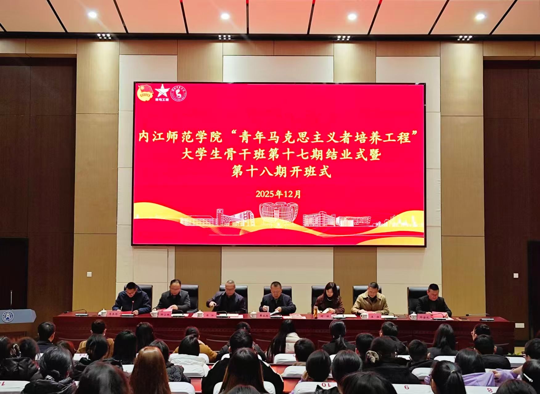 2025年12月25日,内江师范学院第十七期“青年马克思主义者培养工程”结业暨第十八期开班式在行知楼B104举行。学校党委书记黄永忠,党委常委、副校长何佳出席。校团委书记李其林主持。