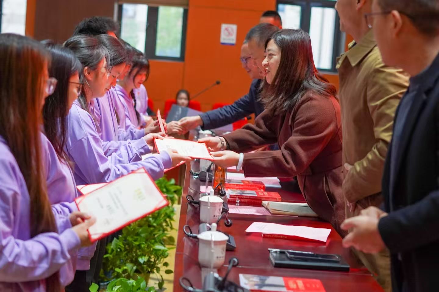 何佳为第十八期青马班授旗,陈湘宣读了第十七期青马班优秀学员名单。与会领导为学员代表赠书,为优秀学员颁发证书。